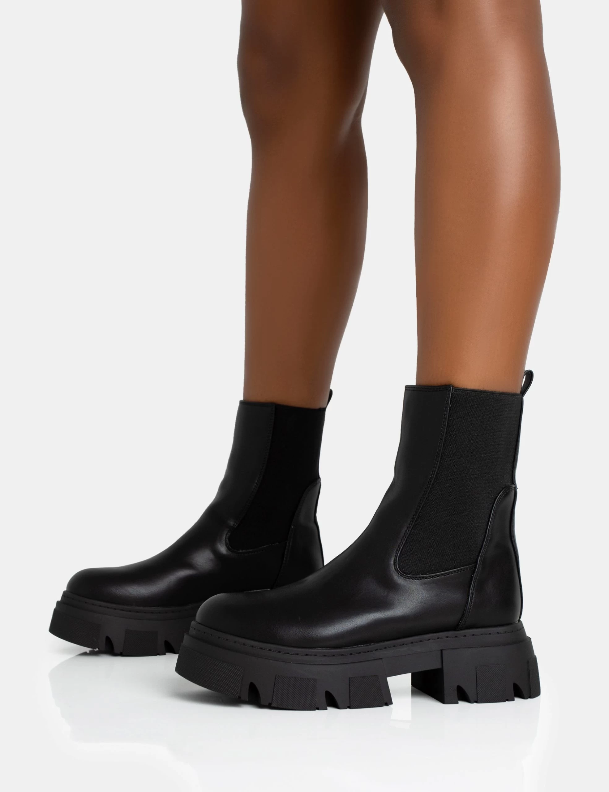 Step into fashion-forward world of these Edgy Black Pu Elasticated Ankle Rounded Chunky Sole Ankle Boots. With a rounded chunky sole and an elasticated ankle to keep the warmth in, they’re sure to be your AW bestie. So why not give your style a spicy kick? Trust us, it’s a (stylishly) hot look!