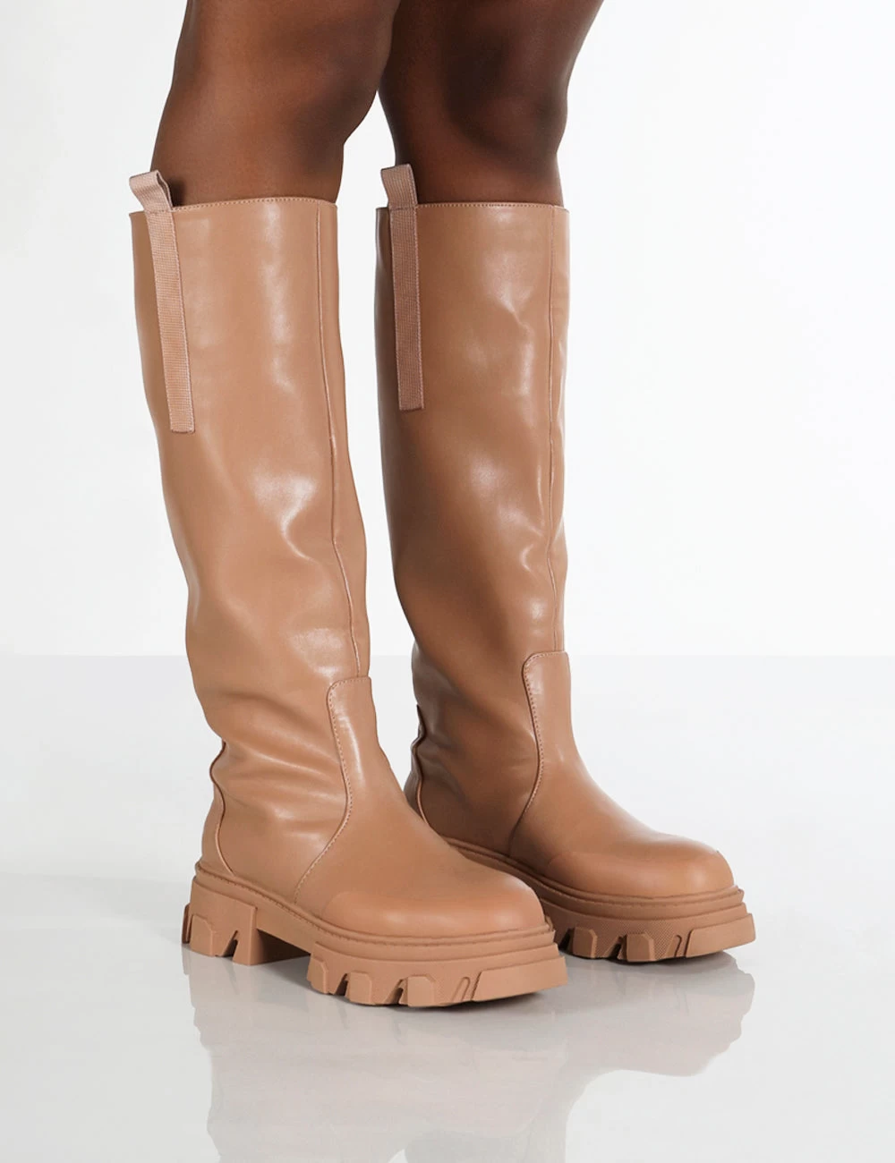 Genius Wide Fit Tan Knee High Platform Chunky Sole Boots