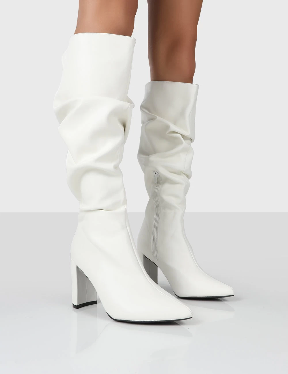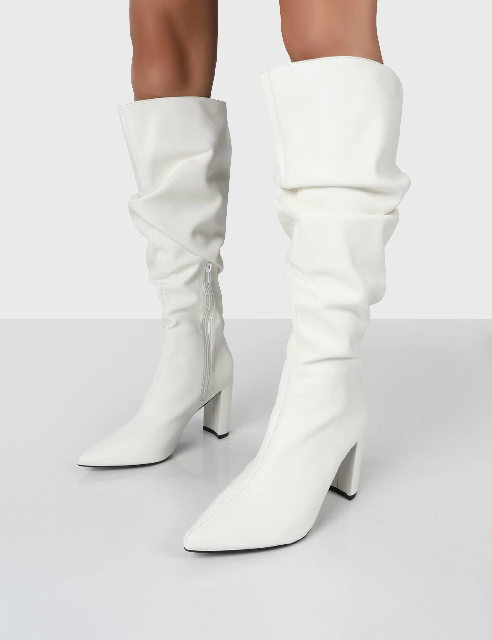 Hailey Beiber’s go-to for a quick LA coffee trip, just dropped in Wide Fit!, Mine features a white faux leather material, ruching detail and a classic block heel. We’re styling ours with cycling shorts and oversized dad blazer. Who doesn’t love a white boot?