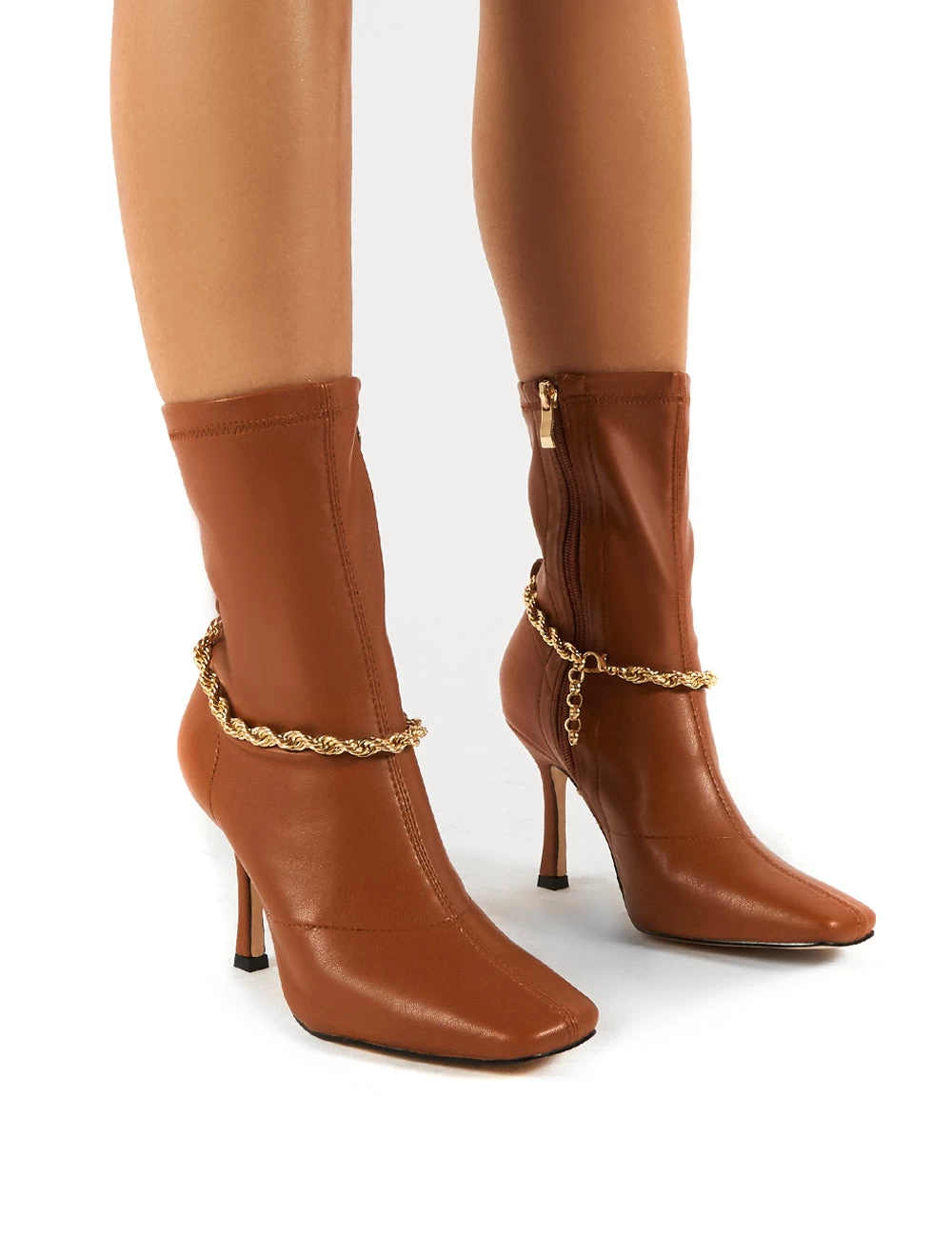 Sacci features a square toe, chain detailing, inside zip and stiletto heel. These boots will complete your outfit!